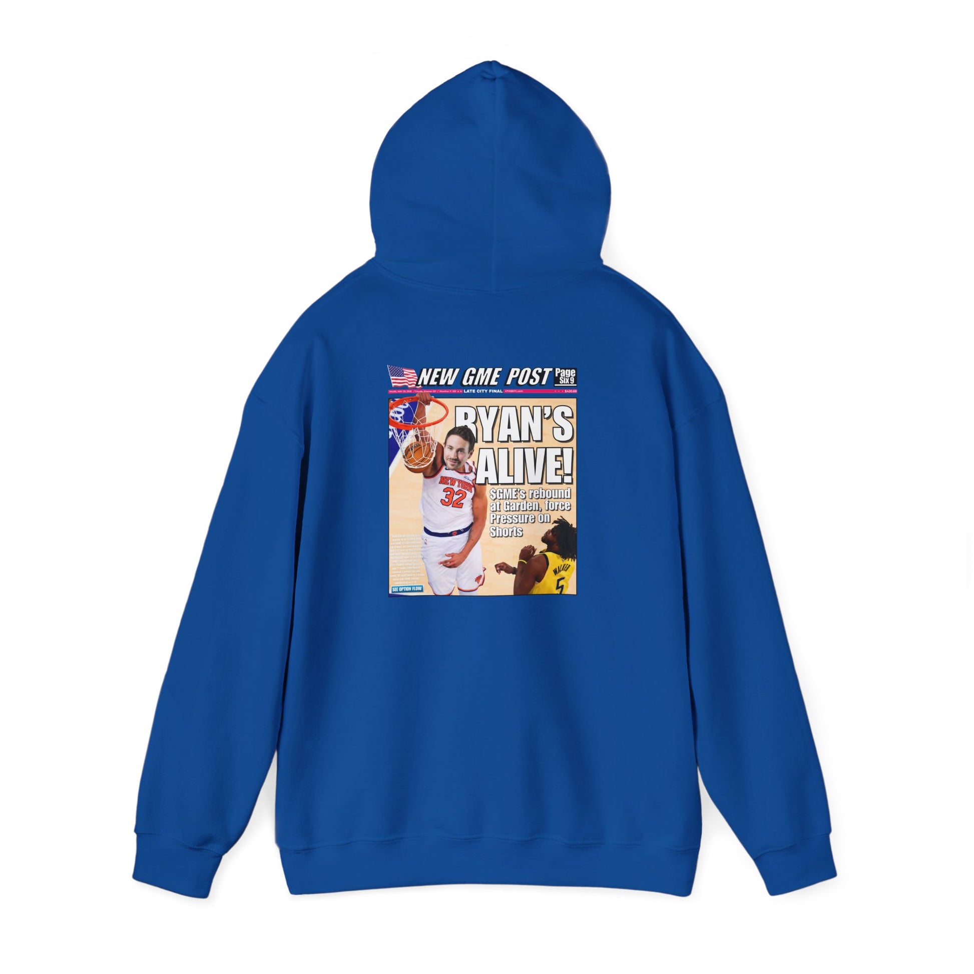 Featuring the bold “RYAN’S ALIVE!” tabloid-style headline, this collectible hoodie captures the chaos, speculation, and excitement that rippled through Reddit, Superstonk, and WallStreetBets on May 29th. Whether you're a longtime GameStop holder, a fan of Roaring Kitty, or just love iconic meme culture, this piece delivers both statement and comfort.
